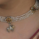 This beautiful Mini Kundan Pearl Choker is a Festive wear must-have, featuring 92.5% Silver, Semi Precious Stone and Oxidised for a stunning Bridal look. Perfect for special occasions, this choker is sure to make a lasting impression.
